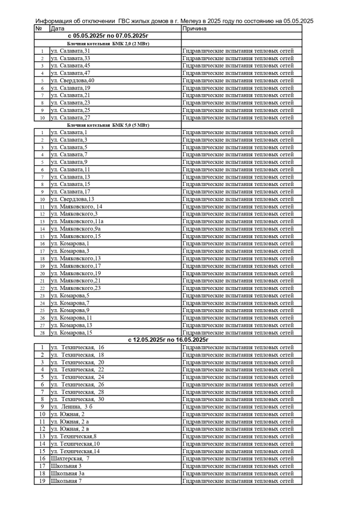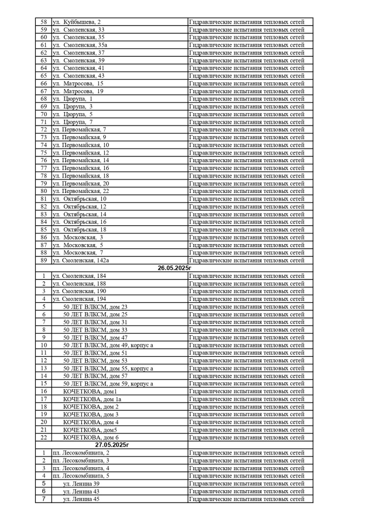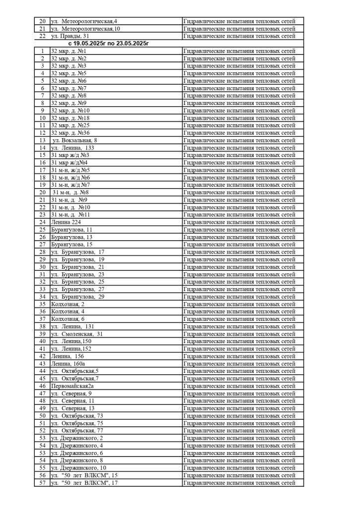 21.10.2025г. с 10.00, будет произведено отключение горячего водоснабжения по адресам: